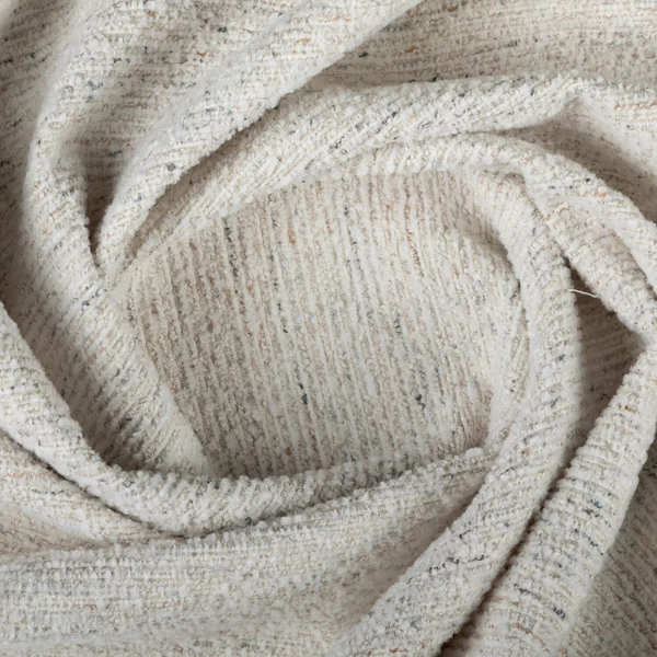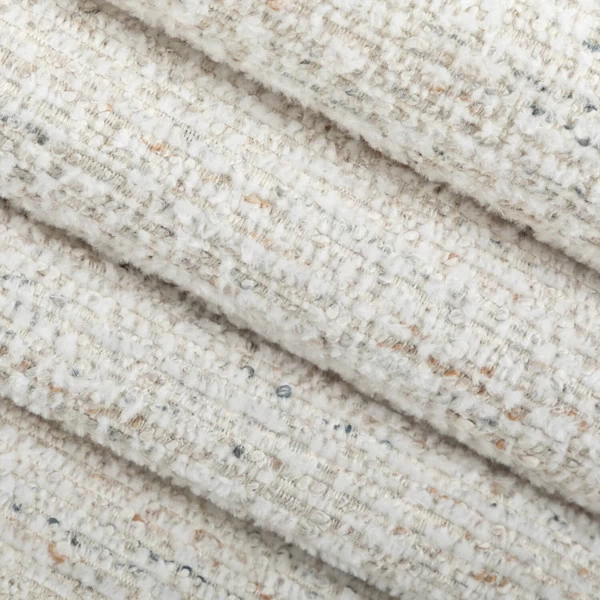 - Polyester indoor-only neutral upholstery fabric with flecks of color.