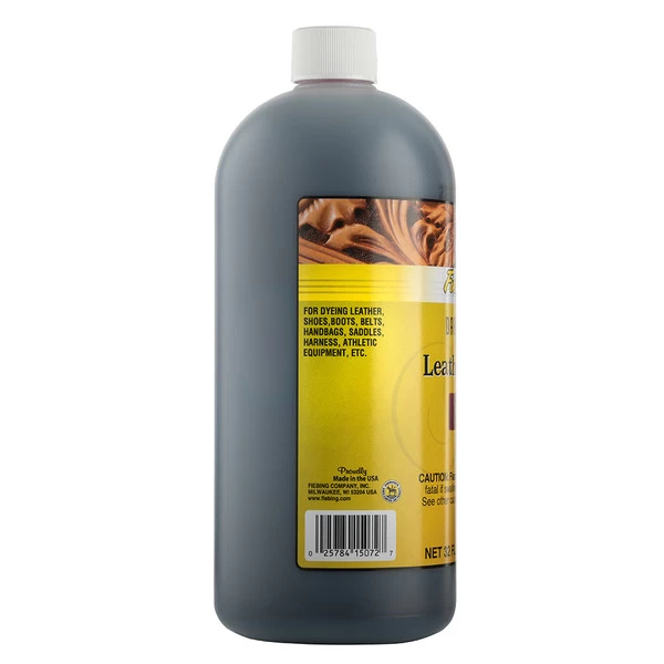 Fiebingās Leather Dye is for dyeing leather surfaces, not for coloring or finishing leather edges. This product is for natural leathers; it will not work on suede or synthetic leathers. Use a wool dauber, sponge, artistās brush or spray nozzle to apply Leather Dye to purses, belts, shoes and boots, saddles and harnesses, and other natural leather items.